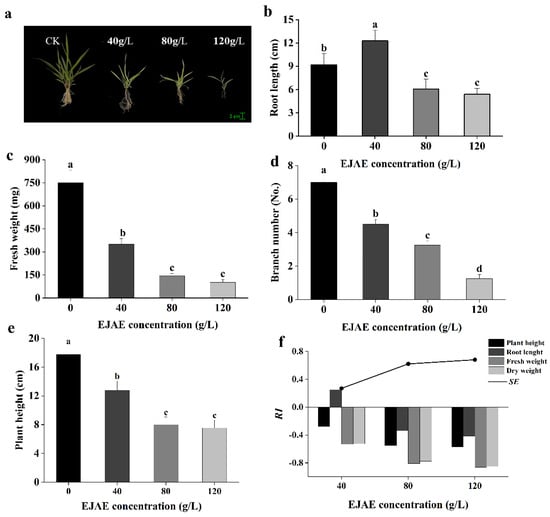 2.1. Allelopathic Effects of EJAE on A. hookeri Seedling Growth