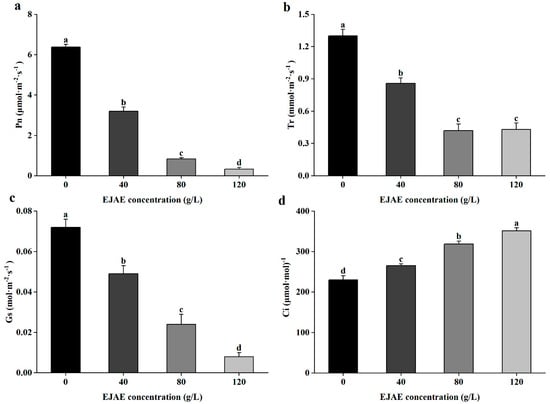 2.2. Allelopathic Effects of EJAE on Photosynthesis in A. hookeri Seedlings
