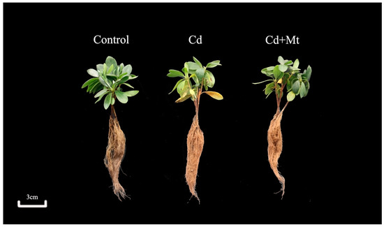 Effects of MT on the phenotype of R. simsii under Cd treatment after 10 days.