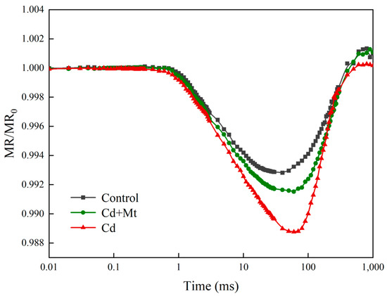 MR820 curves of R. simsii leaves under exogenous MT and cadmium stress for 12 days.