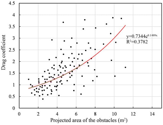 The relationship between the projected area of the obstacle per meter width and the drag coefficient.