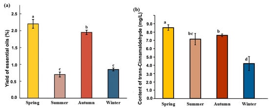 Cheng Y, Fu Y, Gu D, Huang Y, Lu Y, Liu Y, Li X, Yao X, Zhang X, Jian W, et al. Seasonal Variation in Chemical Composition and Antioxidant and Antibacterial Activity of Essential Oil from Cinnamomum cassia Leaves. Plants. 2025; 14(1):81. https://doi.org/10.3390/plants14010081