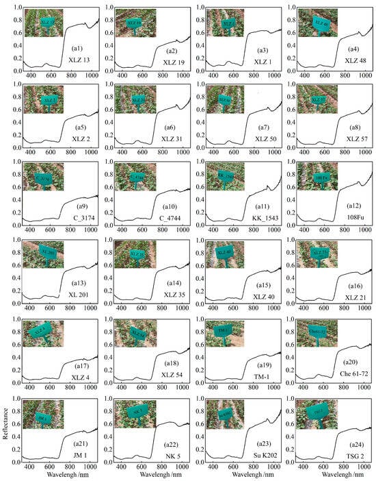 - The spectral changes of 24 cotton cultivars are basically consistent.
