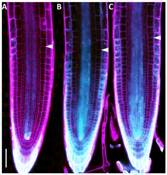 - Di Mambro, R.; Sabatini, S. Developmental Analysis of Arabidopsis Root Meristem. In Root Development: Methods and Protocols; Springer: Berlin/Heidelberg, Germany, 2018; pp. 33–45. [Google Scholar]