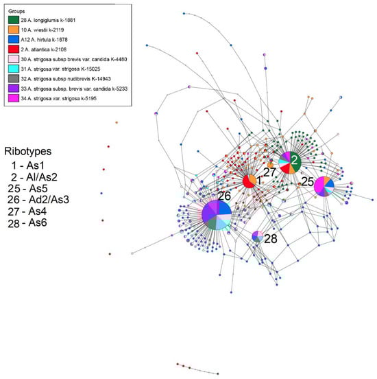 - White, T.J.; Bruns, T.; Lee, S.; Taylor, J. Amplification and direct sequencing of fungal ribosomal RNA genes for phylogenetics. In PCR Protocols: A Guide to Methods and Applications; Innis, M.A., Gelfand, D.H., Sninsky, J.J., White, T.J., Eds.; Academic Press: New York, NY, USA, 1990; pp. 315–322. [Google Scholar] [CrossRef]