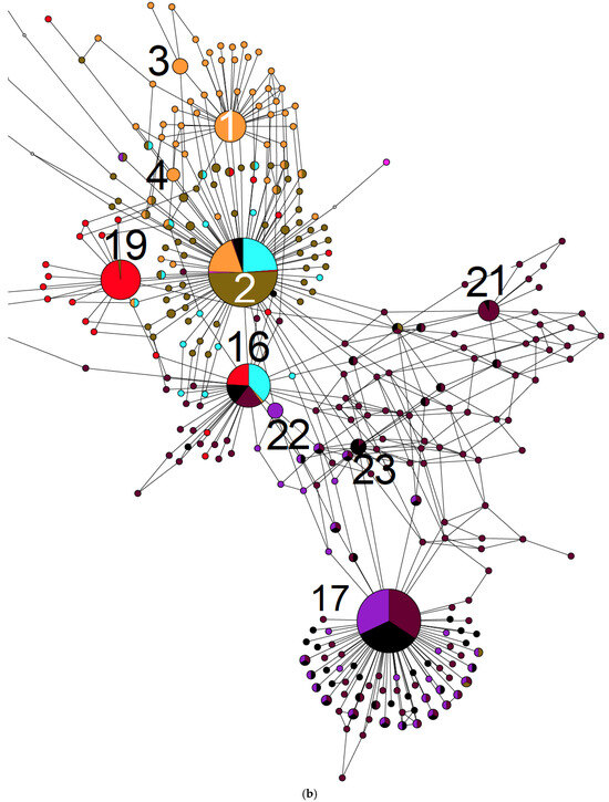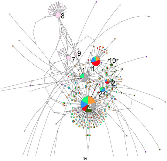 - Clement, M.; Posada, D.; Crandall, K.A. TCS: A computer program to estimate gene genealogies. Mol. Ecol. 2000, 9, 1657–1660. [Google Scholar] [CrossRef]