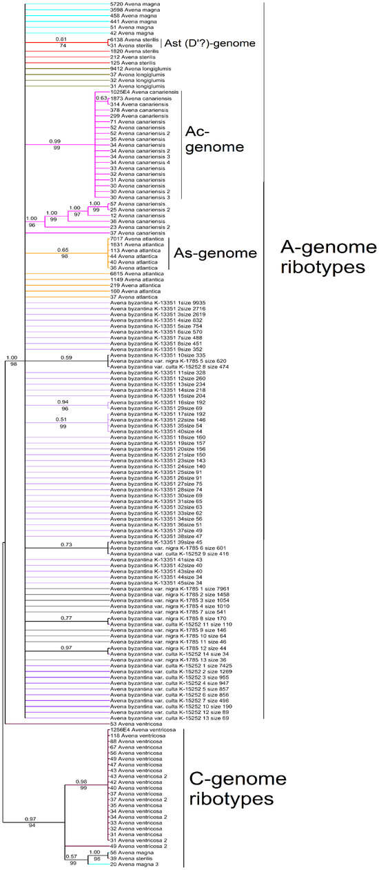 Gnutikov, A.A.; Nosov, N.N.; Loskutov, I.G.; Rodionov, A.V.; Shneyer, V.S. Participation of Wild Species Genus Avena L. (Poaceae) of Different Ploidy in the Origin of Cultivated Species According to Data on Intragenomic Polymorphism of the ITS1-5.8S rRNA Region. Plants 2025, 14, 1550. https://doi.org/10.3390/plants14101550