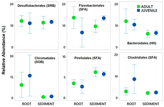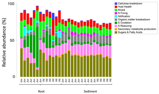 - Cúcio, C.; Overmars, L.; Engelen, A.H.; Muyzer, G. Metagenomic Analysis Shows the Presence of Bacteria Related to Free-Living Forms of Sulfur-Oxidizing Chemolithoautotrophic Symbionts in the Rhizosphere of the Seagrass Zostera marina. Front. Mar. Sci. 2018, 5, 171. [Google Scholar] [CrossRef]