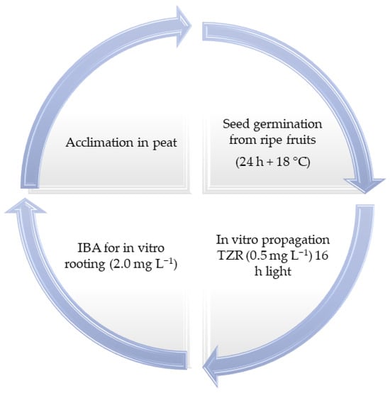 43]. In addition, it facilitates obtaining a large number of seedlings in a small space and under controlled conditions, which is crucial for research, germplasm conservation and mass propagation [