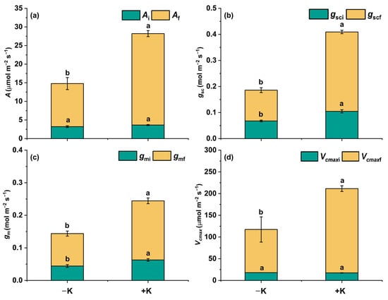 - Lu, Z.; Lu, J.; Pan, Y.; Lu, P.; Li, X.; Cong, R.; Ren, T. Anatomical variation of mesophyll conductance under potassium deficiency has a vital role in determining leaf photosynthesis. Plant Cell Environ. 2016, 39, 2428–2439. [Google Scholar] [CrossRef] [PubMed]