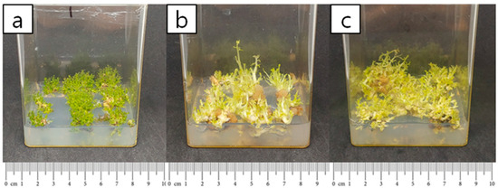 Moreover, interdependence among clustered plantlets offers mutual physical support, reducing the risk of damage and thereby enhancing overall survival rates [37]. Cluster cultivation can also mitigate stress experienced by individual plantlets during tissue culture, as plantlets benefit from the presence of neighbors and may be less affected by environmental fluctuations such as temperature or humidity changes [38].