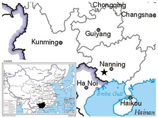 Distribution map of Styrax chongzuoensis (★).
