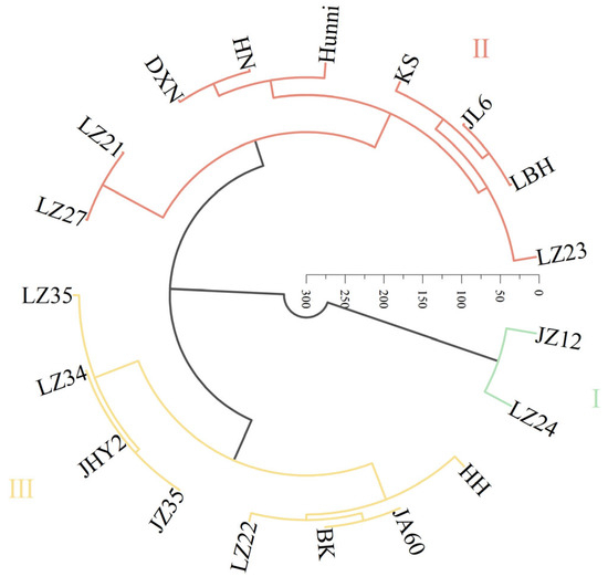 Group II: Moderately drought-tolerant varieties, including nine varieties: LZ23, LBH, JL6, KS, Hunni, HN, DXN, LZ21, and LZ27.