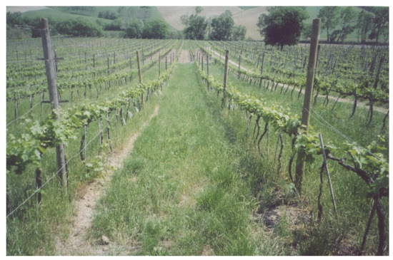 - Bordoni, M.; Vercesi, A.; Maerker, M.; Ganimede, C.; Reguzzi, M.C.; Capelli, E.; Wei, X.; Mazzoni, E.; Simoni, S.; Gagnarli, E.; et al. Effects of Vineyard Soil Management on the Characteristics of Soils and Roots in the Lower Oltrepò Apennines (Lombardy, Italy). Sci. Total Environ. 2019, 693, 133390. [Google Scholar] [CrossRef] [PubMed]