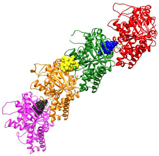 - Pettersen, E.F.; Goddard, T.D.; Huang, C.C.; Couch, G.S.; Greenblatt, D.M.; Meng, E.C.; Ferrin, T.E. UCSF Chimera—A Visualization System for Exploratory Research and Analysis. J. Comput. Chem. 2004, 25, 1605–1612. [Google Scholar] [CrossRef]