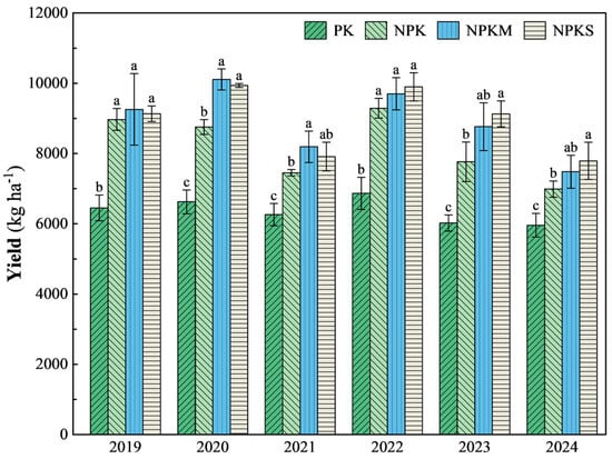 | NPKM | 9.7 ± 3.2 a | 18.4 ± 4.4 a | 16.1 ± 1.6 a | 12.9 ± 0.8 ab | ||
