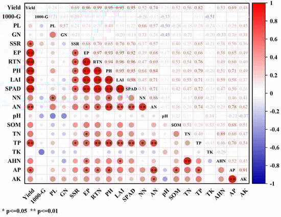 3.5. Comprehensive Analysis of Rice Yield and Its Components, Growth Index, and Topsoil Properties
