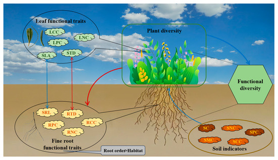 - Geng, Y.; Wang, L.; Jin, D.; Liu, H.; He, J. Alpine climate alters the relationships between leaf and root morphological traits but not chemical traits. Oecologia 2014, 175, 445–455. [Google Scholar] [CrossRef]
