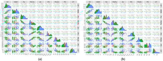 The mean significance of seed yield and nutritional quality traits was determined using Tukey’s test for mean comparison (p ≤ 0.05) using the ‘agricolae’ package. Network correlations between seed yield and nutritional quality traits were analyzed through Pearson’s correlation coefficient (p ≤ 0.05) using the ‘GGally’ package.