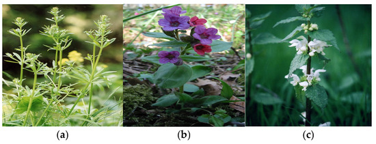 Figure 8. (a) Galium appears L.; (b) Pulmonaria officinalis; (c) Laminium album.