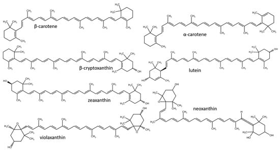 - Meléndez-Martínez, A.J. An overview of carotenoids, apocarotenoids, and vitamin A in agro-food, nutrition, health, and disease. Mol. Nutr. Food Res. 2019, 63, 1801045. [Google Scholar] [CrossRef] [PubMed]