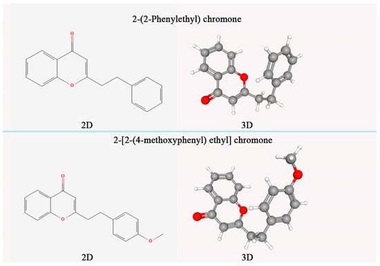 28], in which the sample solution was determined by ethanol extract. Appropriate amounts of 2-[2-(4-methoxy) phenylethyl] chromone and 2-(2-phenylethyl) chromone standards (chemical structure in