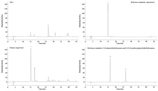 Through the study of the chemical constituents of agarwood samples at home and abroad, it was found that agarotetrol, 2-(2-phenylethyl) chromone, 2-[2-(4-methoxyphenyl) ethyl] chromone, and 2-(2-phenylethyl) chromone were the markers for the identification of agarwood [