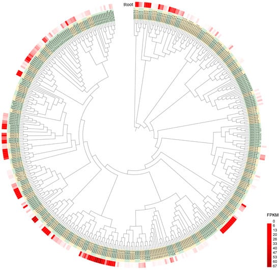 The copies of each TaNAC member in subgenomes did not invariably exhibit the same expression level. In the roots of wheat seedlings, on the whole, 145 TaNAC genes (32.51%) were expressed normally, 182 TaNACs (40.81%) showed the low transcript level with the FPKM value less than 1, and the remaining 119 TaNACs (26.68%) detected no expression (Figure 2, Table S1).