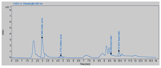 Amount of Quercetin, Gallic Acid, Caffeic Acid, and Myricetin in the Aqueous Extract of M. peregrina