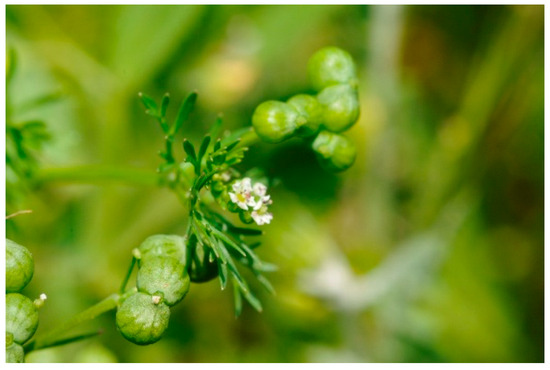 - Hedge, I.C.; Lamond, J.M. Bifora Hoffm. In Flora of Turkey and the East Aegean Islands; Davis, P.H., Ed.; Edinburgh University Press: Scotland, UK, 1972; Volume 4, pp. 332–333. [Google Scholar]