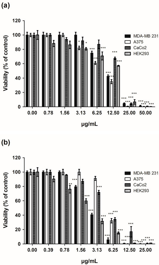 - Arunachalam, K.; Sreeja, P.S. MTT Assay Protocol. In Advanced Cell and Molecular Techniques. Springer Protocols Handbooks; Humana: New York, NY, USA, 2025; pp. 271–276. [Google Scholar] [CrossRef]