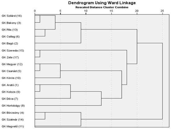 Advanced statistical approaches, including the principal component analysis and cluster analysis, offer valuable tools for classifying drought tolerance-related traits and distinguishing among genotypes [4]. The PCA enables a more structured interpretation of the multivariate responses to drought stress [4,12,22,36,37,46,48,57]. The five principal components derived from the original 20 variables explained more than 87% of the total variance, indicating that the complex data structure could be simplified with minimal loss of information. The clustering of variables within the principal components reflects biologically meaningful patterns, supporting the credibility of the analysis. The first principal component (PC1) describes fertility based on secondary spikes and lateral productivity. The second component (PC2) is associated with overall productivity and biomass accumulation. The third component (PC3) reflects yield-related traits linked to the main spike, while the fourth component (PC4) characterizes the structure and fertility of the main spike. The fifth component (PC5) primarily represents heading time. The results confirm that drought tolerance cannot be reduced to a single trait but is the outcome of multiple interacting factors [19]. The PCA-based cluster analysis enabled the grouping of genotypes [4,19,40] in a way that reflects deeper relationships within their phenotypic responses. Although hierarchical and k-means clustering did not group the genotypes in exactly the same way, they showed substantial overlap. Varieties 4, 14, and 11 form a clearly distinguishable group on the dendrogram and were classified into the drought-sensitive group by both clustering methods. Some varieties (12, 5, 1, 9, and 7), although positioned in the intermediate group based on the dendrogram, were classified as drought-sensitive by k-means clustering due to their significant yield loss. For the same reason, varieties 2, 6, and 13—originally placed in the drought-tolerant group on the dendrogram—were reassigned to the intermediate group. Among the members of the drought-tolerant Cluster 1 (16, 3, 15, 17, and 10), only variety 10 was moved to the tolerant group, as it showed a relatively stable yield performance. The grouping of genotypes reveals that certain varieties, despite not achieving outstanding yields under well-watered conditions, exhibit only a moderate yield reduction under drought stress. In contrast, other varieties demonstrate exceptionally high yield potential under optimal conditions, and although their performance declines sharply under drought, they may still compete with more drought-tolerant genotypes in terms of the final yield [9,20,26,27,29,37,39,54].