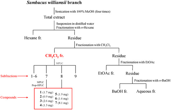 Isolation of compounds 1–7 from Sambucus williamsii branch.