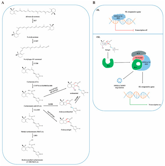 - Mashiguchi, K.; Seto, Y.; Yamaguchi, S. Strigolactone Biosynthesis, Transport and Perception. Plant J. 2021, 105, 335–350. [Google Scholar] [CrossRef]
