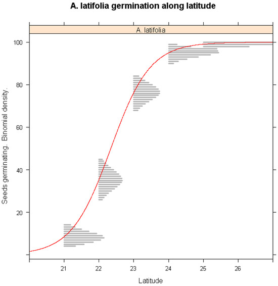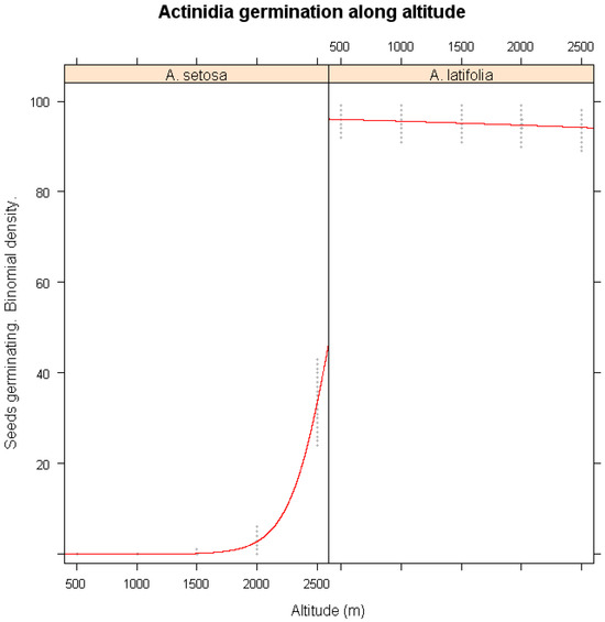 • Altitudinal Model: Relationship between germination percentage and elevation for A. setosa and A. latifolia.