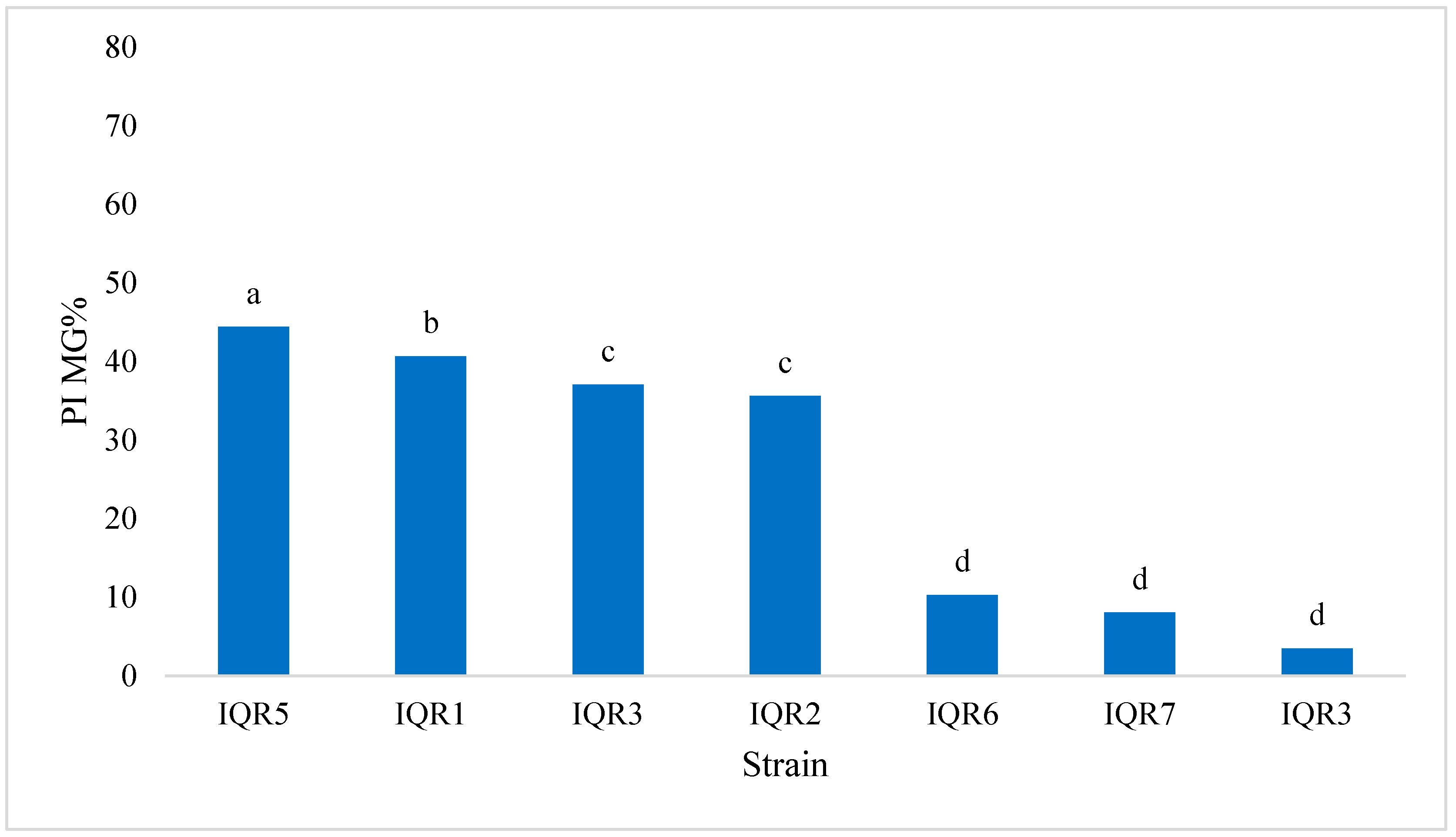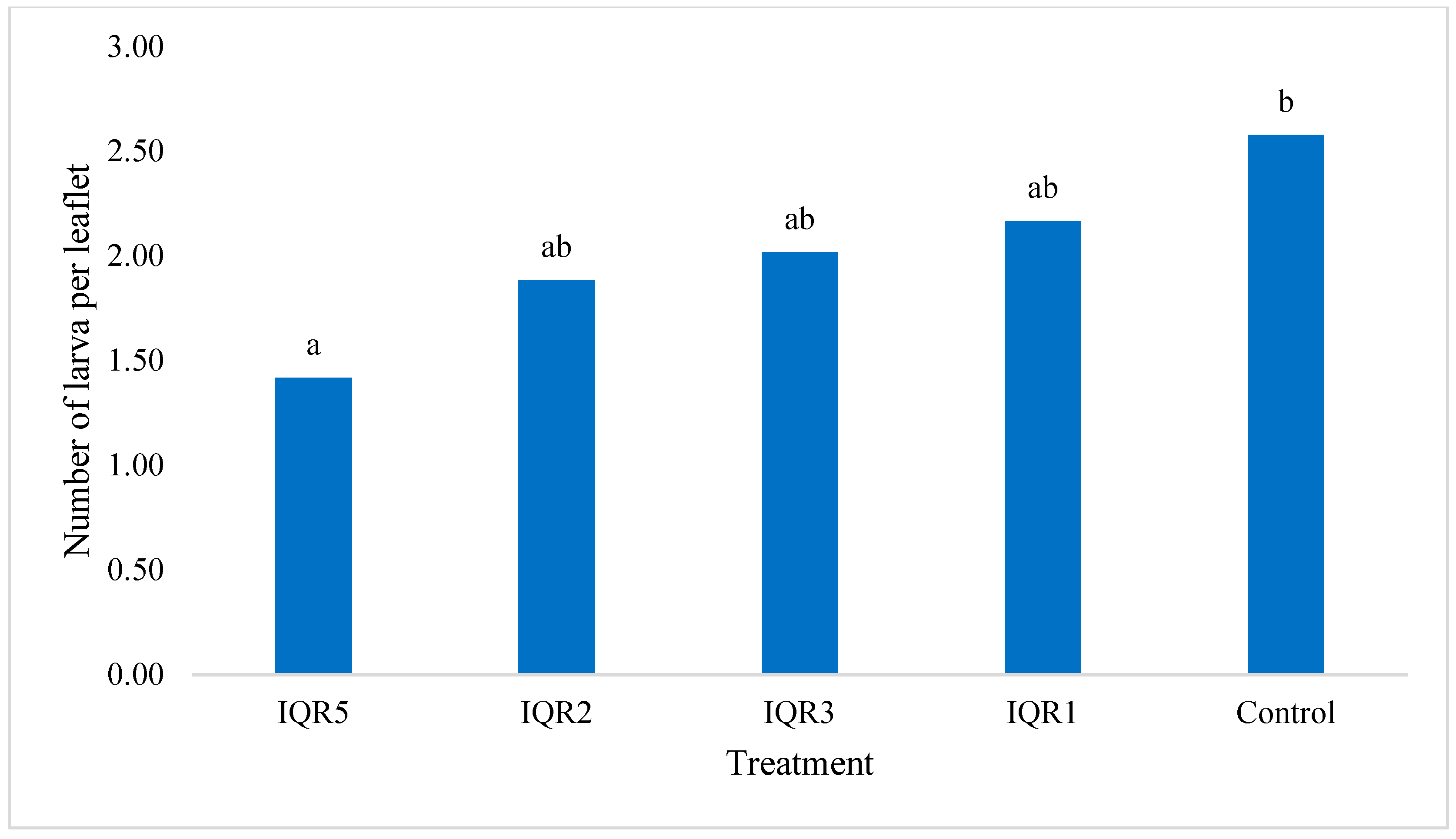 4.7. Evaluation of the Effects of Isolates on Tuta absoluta Under Greenhouse Conditions