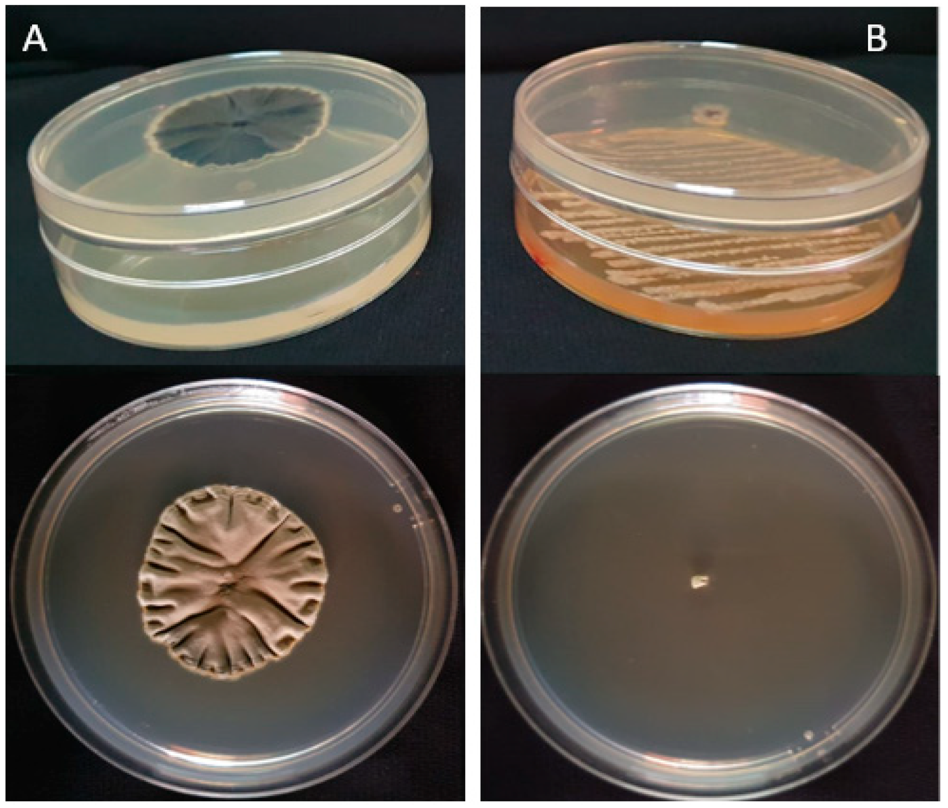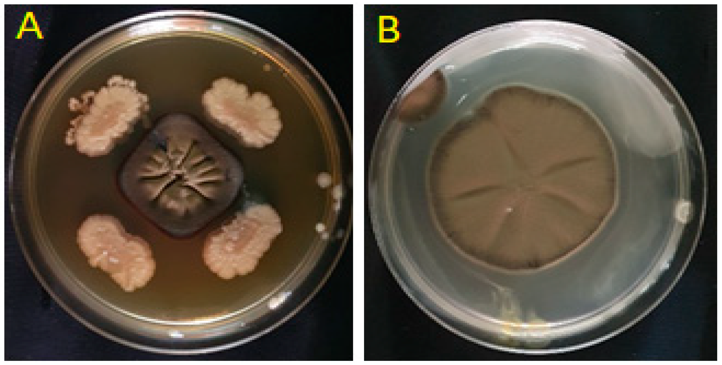 - Belabess, Z.; Gajjout, B.; Legrifi, I.; Barka, E.A.; Lahlali, R. Exploring the Antifungal Activity of Moroccan Bacterial and Fungal Isolates and a Strobilurin Fungicide in the Control of Cladosporium fulvum, the Causal Agent of Tomato Leaf Mold Disease. Plants 2024, 13, 2213. [Google Scholar] [CrossRef]
