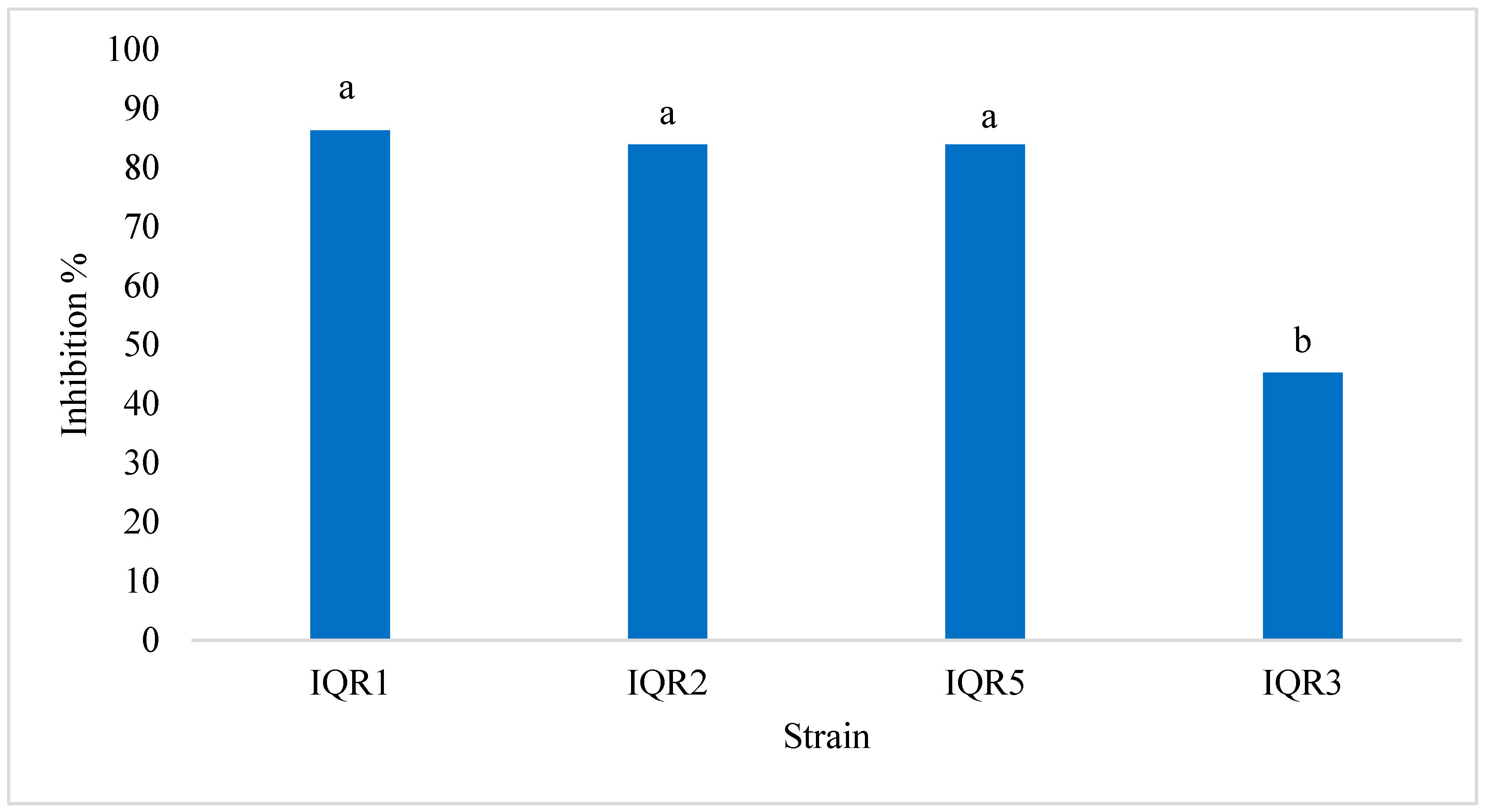 2.2. In Vitro Antagonism of P. fulva by Bacterial Isolates