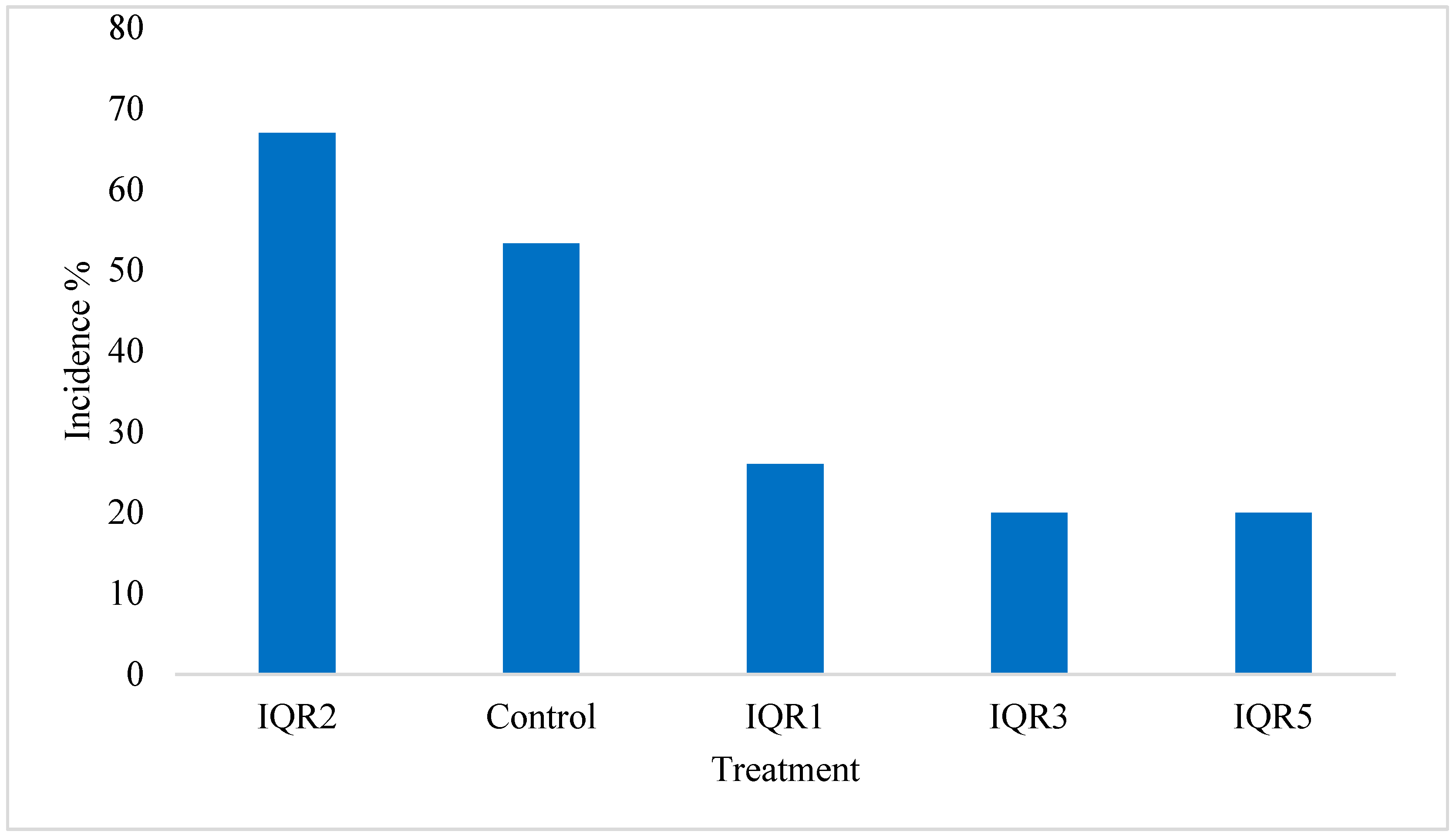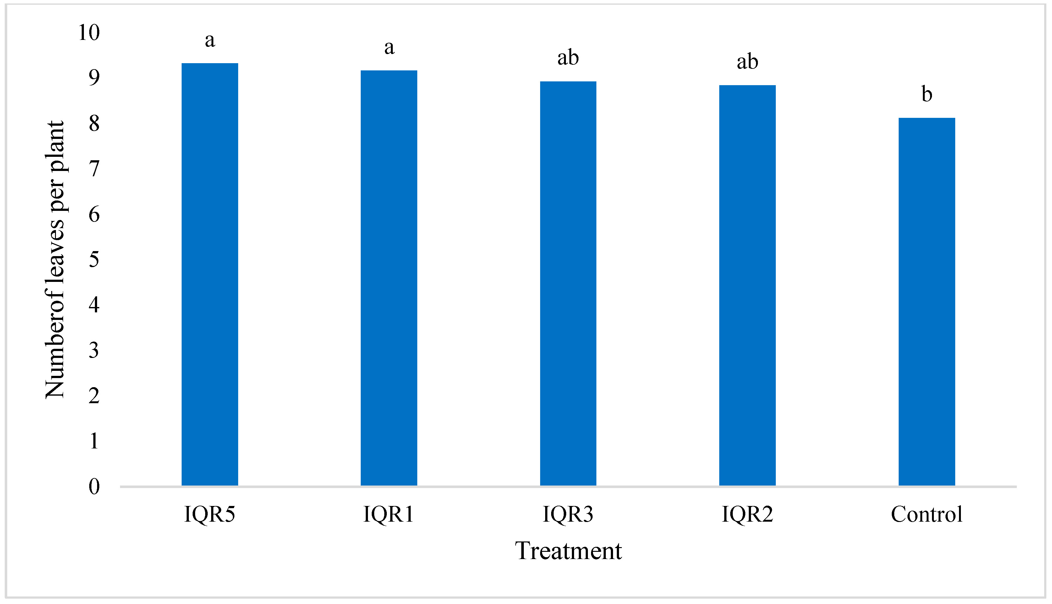2.8. Effects of Bacterial Isolates on Tuta absoluta Infestation