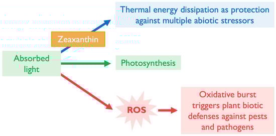 Demmig-Adams, B.; Hodges, A.K.; Polutchko, S.K.; Adams, W.W., III. Zeaxanthin and Other Carotenoids: Roles in Abiotic Stress Defense with Implications for Biotic Defense. Plants 2025, 14, 2703. https://doi.org/10.3390/plants14172703