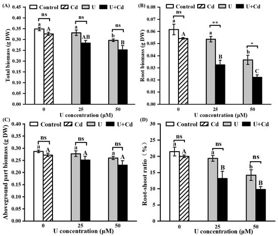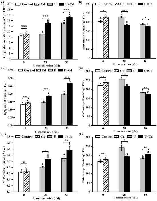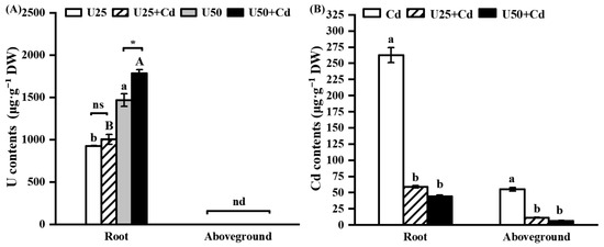 Chicago/Turabian StyleGuo, Xin-Peng, Xi Chen, Chun-Xia Tu, Yu-Meng Fan, Ming-Xuan Wang, Zheng-Qin Zhao, Shi-Yi Yang, Lan-Lan Cui, Guo Wu, Jin-Long Lai, and et al. 2025. "Effects of Cadmium on the Accumulation and Phytotoxicity of Uranium in Radish (Raphanus sativus L.) Seedlings" Plants 14, no. 17: 2711. https://doi.org/10.3390/plants14172711