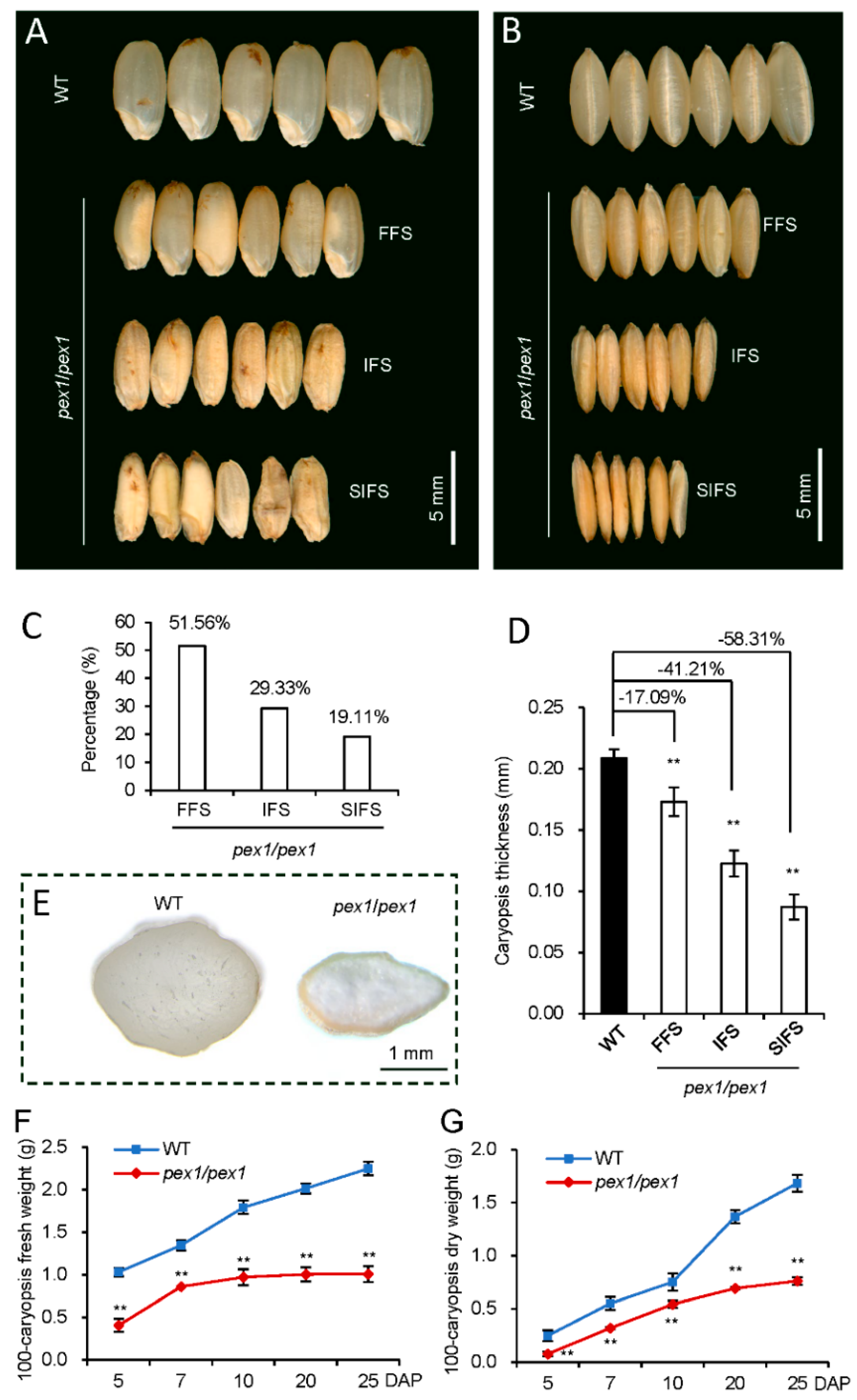 2.1. The pex1 Mutant Shows Low Rate of Grain Filling