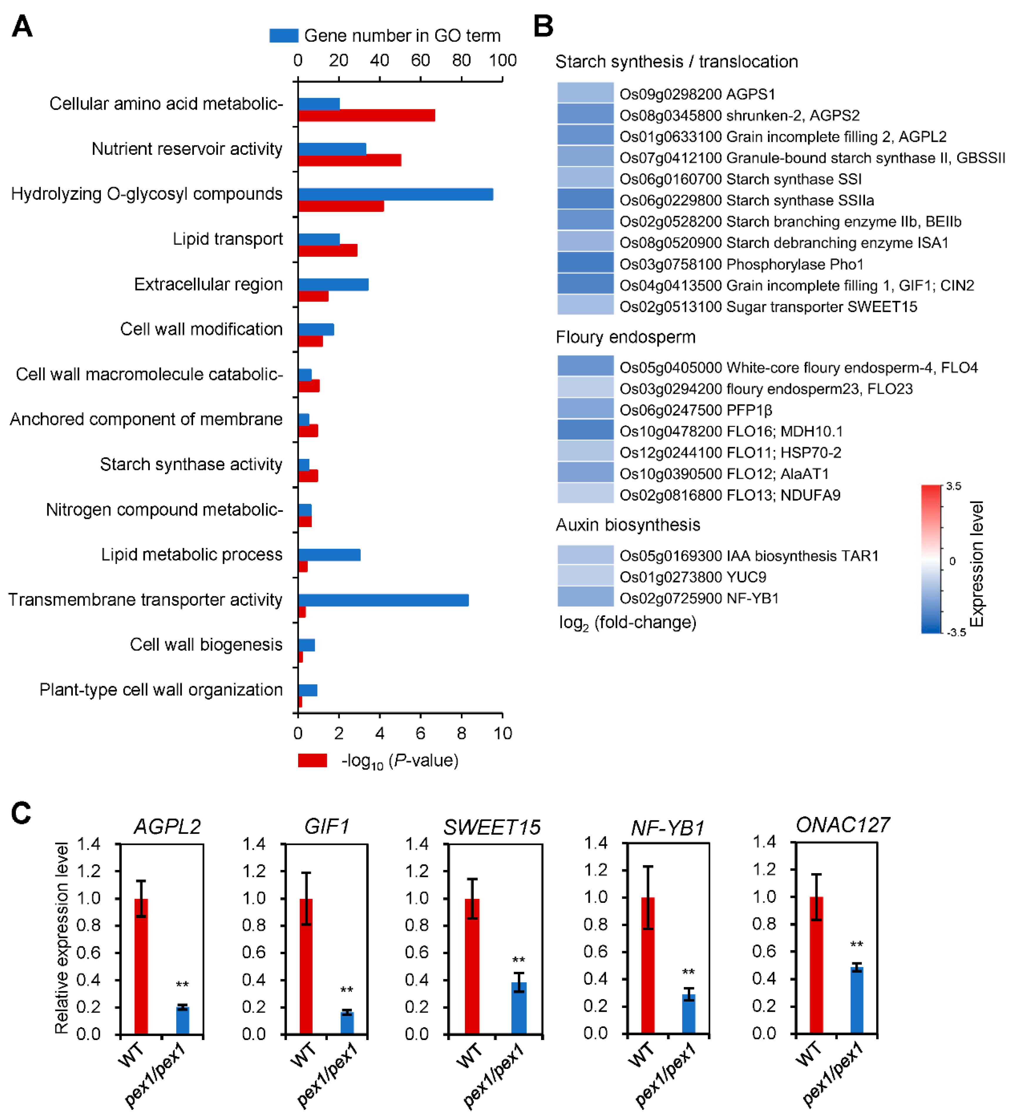 2.5. Expressions of Key Genes Related to Grain Filling Were Altered in pex1