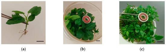 - Murashige, T.; Skoog, F. A Revised Medium for Rapid Growth and Bio Assays with Tobacco Tissue Cultures. Physiol. Plant. 1962, 15, 473–497. [Google Scholar] [CrossRef]
