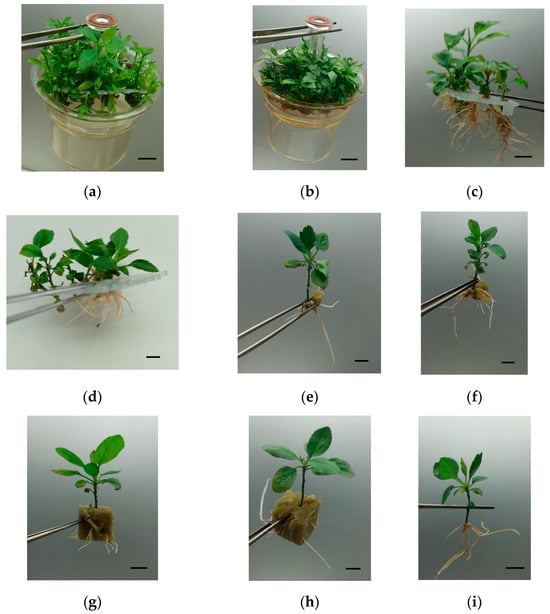 - Magyar-Tábori, K.; Dobránszki, J.; Jámbor-Benczúr, E.; Bubán, T.; Lazányi, J.; Szalai, J.; Ferenczy, A. Posteffects of cytokinins and auxin levels of proliferation media on rooting ability of in vitro apple shoots (Malus domestica Borkh.) ‘Red Fuji’. Int. J. Hortic. Sci. 2001, 7, 26–29. [Google Scholar] [CrossRef][Green Version]
