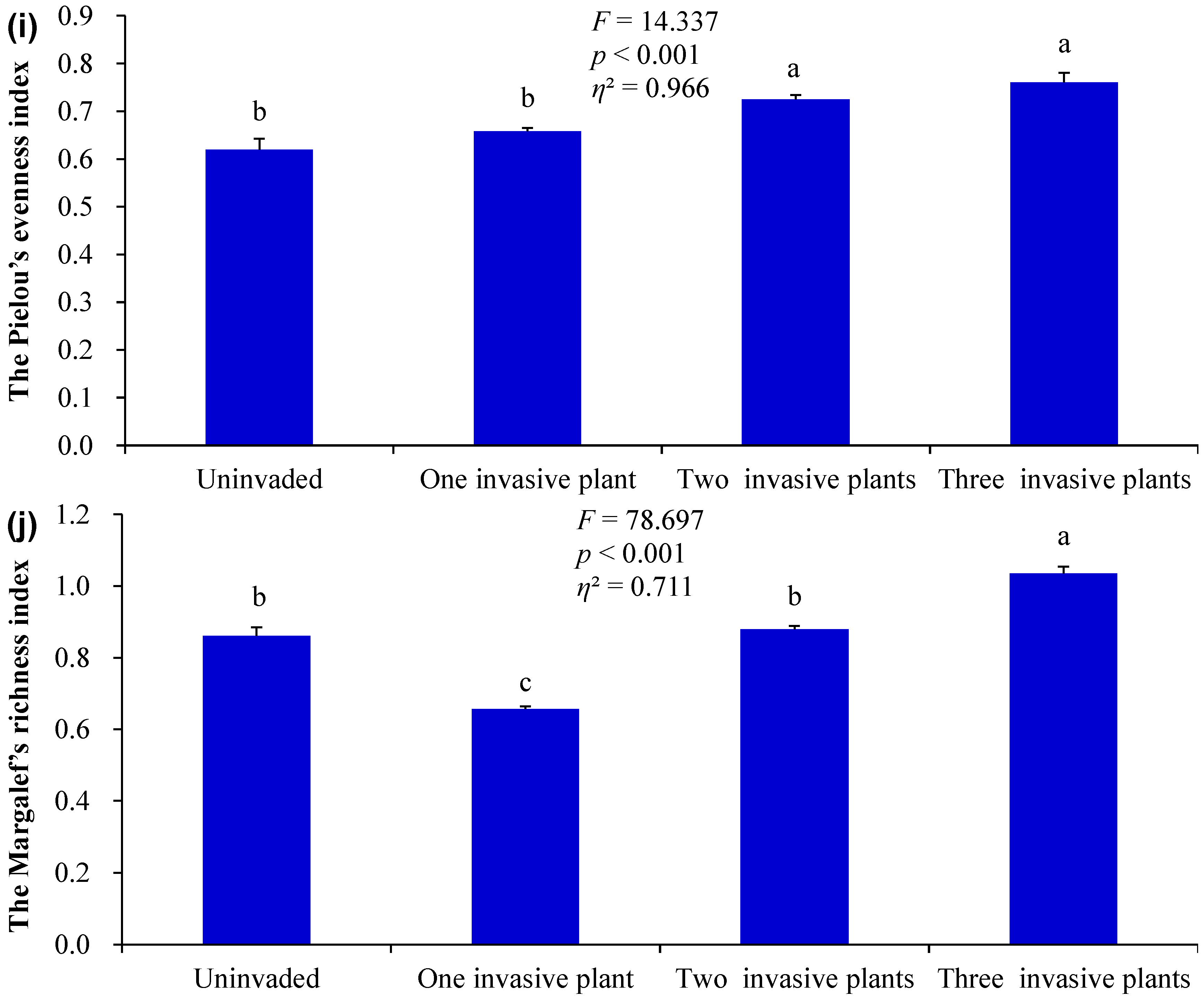 3.1. Differences in the Measured Indices Under Different Invasion Scenarios