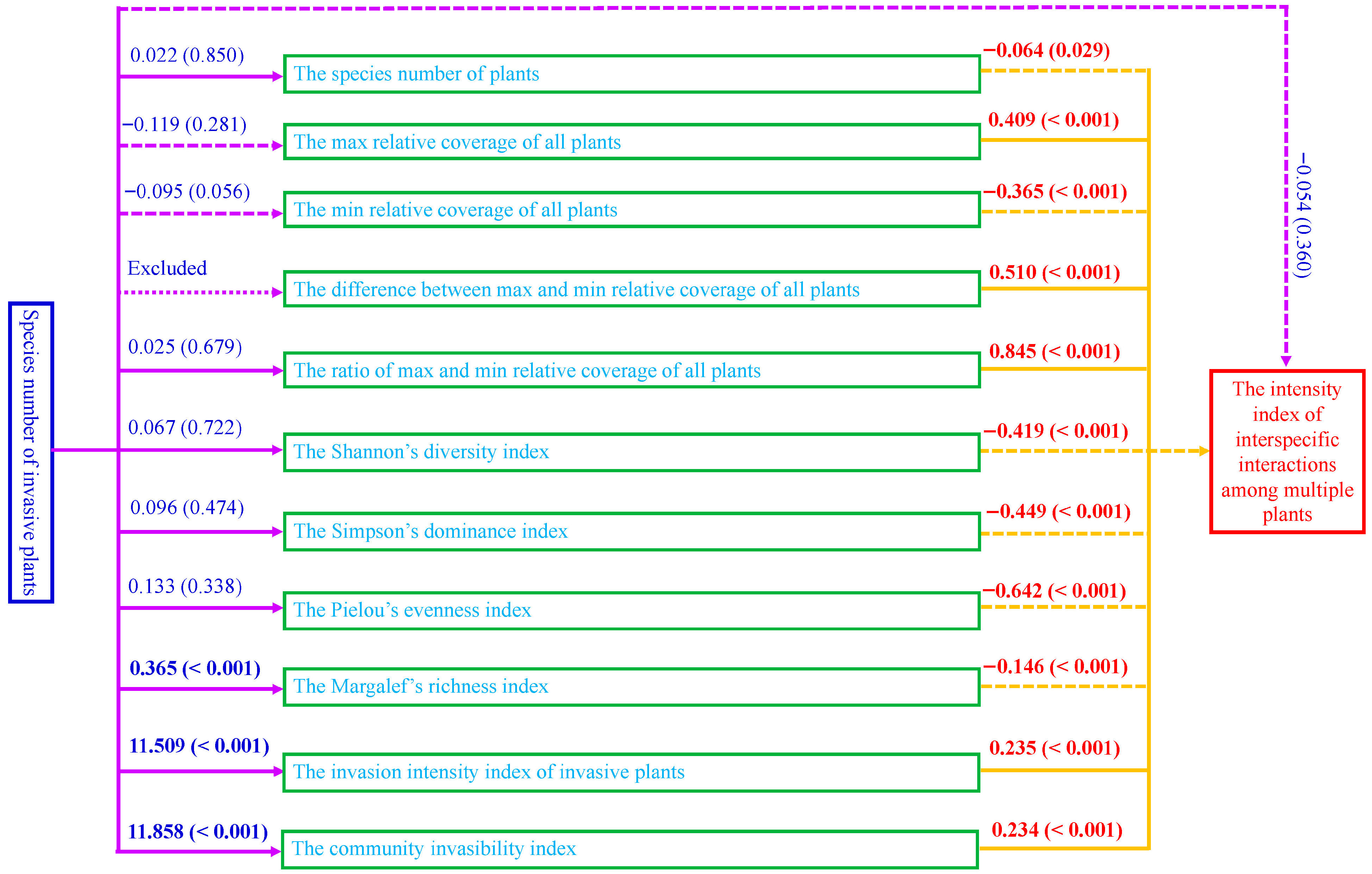 3.2. Correlation Between the Measured Indices Under Different Invasion Scenarios