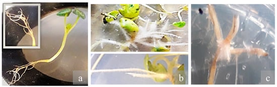 - Chen, L.; Cai, Y.; Liu, X.; Guo, C.; Sun, S.; Wu, C.; Jiang, B.; Han, T.; Hou, W. Soybean hairy roots produced in vitro by Agrobacterium rhizogenes-mediated transformation. Crop J. 2018, 6, 162–171. [Google Scholar] [CrossRef]