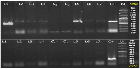 2.5. Molecular Verification of the Transgenic Nature of Hairy Roots