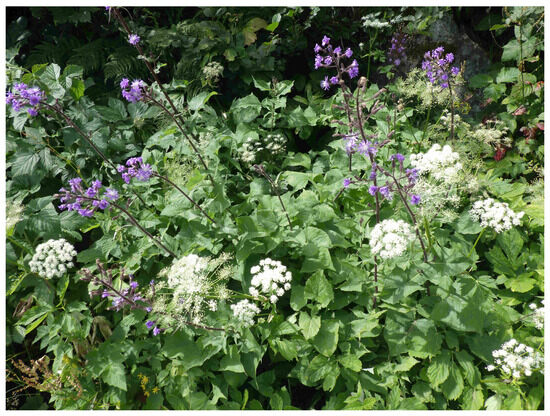Cicerbita alpina and Peucedanum ostruthium growing together in a subalpine megaphorb community (5th of August 2024 near Passo del Tonale, Vermiglio/Trentino/Italy; N 46°15′12.0″, E 10°36′18.5″ E, 2000 m. a.m.s.l.; CZ).
